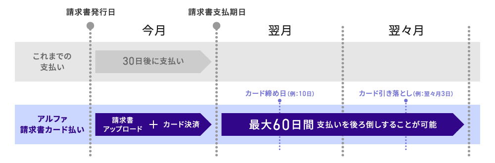 お手持ちのクレジットカードで、本来カード払いできない請求書を決済可能にして、お支払い日を延長します。資金調達や借り入れなしで資金繰りを改善し、事業を加速できます!
